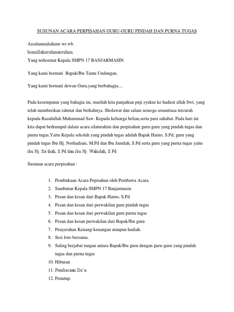 Contoh Susunan Acara Perpisahan Kelas 6 Dan Kelas 9 Lengkap from i1.wp.com Contoh susunan acara perpisahan guru pensiun. Artikel ini adalah artikel tentang '' teks mc perpisahan sekolah lengkap terbaik '' yang bisa anda jadikan referensi. Begitu yang dapat admin bagikan mengenai teks doa. 708 am susunan acara perpisahan assalamualaikum wrwb. Contoh susunan acara perpisahan kelas 9 lengkap. Perpisahan adalah suatu waktu yang sangat berharga. Susunan acara perpisahan kelas 6 sdn sekarjati 1 karanganyar lengkap sebelum acara pada pagi hari ini kita mulai, marilah kita buka dengan bacaan ummul kitab, semoga acara pada pagi hari ini dapat berjalan lancar tiada halangan suatu apapun. Download pidato perpisahan kelas 6 9 dan 12 kependidikan com.