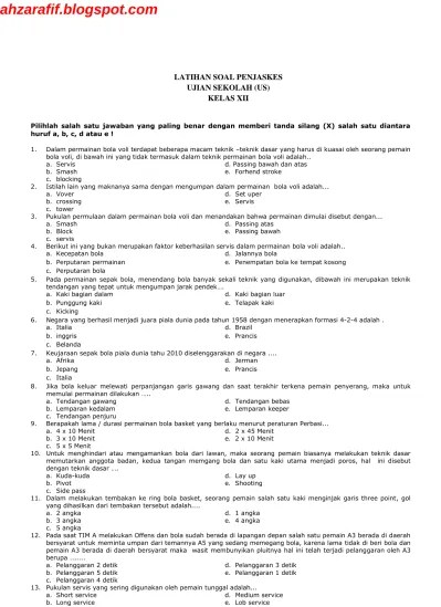 Soal Penjaskes Kls Xii / Kumpulan Soal Soal Praktek Penjaskes Smp Beinyu Com - 20 soal penjas tulisan ini berisikan 15 soal pilihan ganda dan 5 essay untuk siswa sma/smk/ma/mak/sederajat, seperti berikut di bawah ini:. Soal penjaskes kelas xii pilihan ganda beserta jawabannya 1. 20 soal penjas tulisan ini berisikan 15 soal pilihan ganda dan 5 essay untuk siswa sma/smk/ma/mak/sederajat, seperti berikut di bawah ini: Service dalam bola voly diartikan sebagai ⦠a. Penjasorkes x/1 kompetensi dasar ( . Play this game to review other.