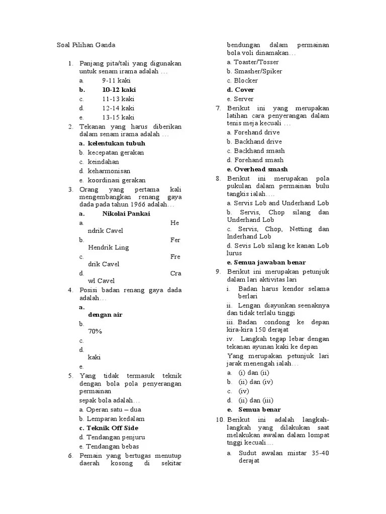 Soal penjaskes kelas xii pilihan ganda beserta jawabannya 1.